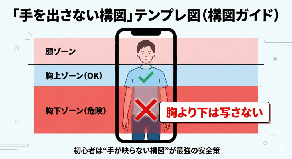 - 手が画面に出ない構図になっている(胸より下は写さない)