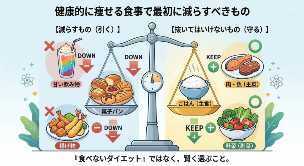 余分なエネルギーを減らしながら、必要な栄養は落とさない食べ方です。